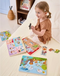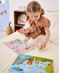 De farverige puslespil præsenterer en mangfoldighed af naturlige scener og lyde, der straks vil fascinere børn.