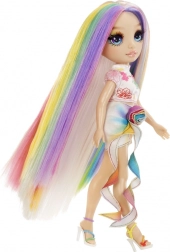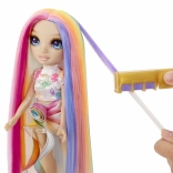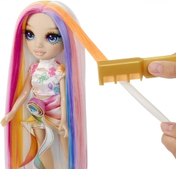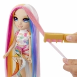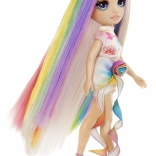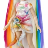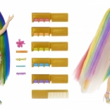 Dukken har usædvanligt langt, glat hår med regnbuestriber, som er nemt at rede, flette og forme i forskellige looks – fra bølger og fletninger til markante farvelinjer.