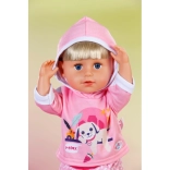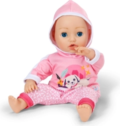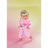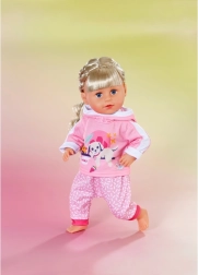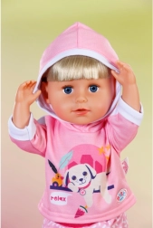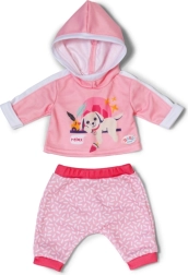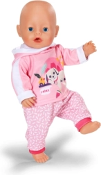 Dette lyserøde joggingtøj er et perfekt supplement til garderoben for BABY born-dukker 43 cm og BABY born Teddy. Hættetrøjen med et sødt print af en hvilende hund og de behagelige bukser med et diskret mønster sikrer komfort i alle eventyr. Takket være det gennemtænkte snit er tøjet let at tage af og på.