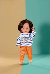 Forkæl din dukke eller bamse med et friskt nyt outfit, der emmer af sommer og ubekymret stemning. Den stribede T-shirt med palme- og solprint matches med orange bukser med behagelig linning. Sættet er lavet af bløde tekstiler, så både påklædning og leg er maksimal komfortabel.