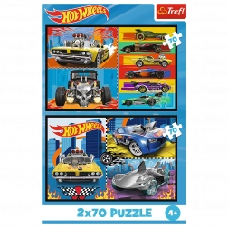 Disse puslespil tilbyder to billeder at samle, hvilket gør det muligt for flere børn at deltage i legen. Hvert puslespil indeholder 70 brikker og skaber et billede med målene 275x180 mm. Motiverne af Hot Wheels vil fascinere enhver lille bilentusiast.