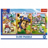 Puslespil 3x80 fra mærket Trefl indeholder tre sjove puslespil med 80 brikker i én pakke, ideelle til at udvikle børns kreativitet og samarbejde under lægningen.