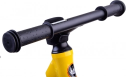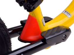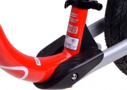 Sikkerhed og komfort øges af styrebegrænseren, der forhindrer skarpe udsving, ergonomisk styr med skridsikre greb og hurtigspænde til justering af saddelhøjde (ca. 31–37 cm), så løbecyklen kan vokse med barnet. Bageste fodstøtter gør det muligt at hvile fødderne behageligt ved nedkørsler og træne balancen.