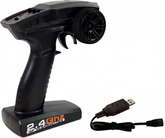 Ergonomisk pistolgrebs-controller med styring af hjul og gas på 2,4 GHz-frekvens sikrer pålidelig rækkevidde og kørsel uden gensidig interferens.