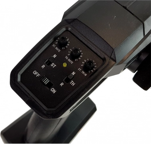 Fjernbetjeningen på 2,4 GHz gør det muligt at køre flere førere samtidig uden forstyrrelser og fint justere gas og hastighed. Den kraftige 380-motor accelererer modellen op til 45 km/t, mens lithiumbatteriet 7,4 V 1200 mAh giver cirka 18 minutters kørsel pr. opladning.