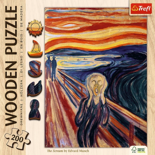 Forkæl dig selv med afslappende stunder med dette ekstraordinære træpuslespil fra TREFL, inspireret af mesterlige malerier. Denne udgave præsenterer det berømte værk EDVARD MUNCH – Skriget, som vil glæde både kunstelskere og krævende puzzlere. Takket være den præcise laserbearbejdning er brikkerne robuste, nøjagtige og en fornøjelse at samle.