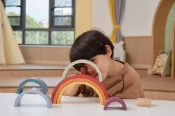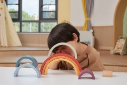 Den sikre udførelse uden skarpe kanter og det holdbare, omhyggeligt slebne træ sikrer et behageligt greb og lang levetid. Ikke-giftige farver er skånsomme mod både børn og natur. Regnbuen er et smukt redskab i Montessori-tilgangen og samtidig en stilfuld dekoration til børneværelset.