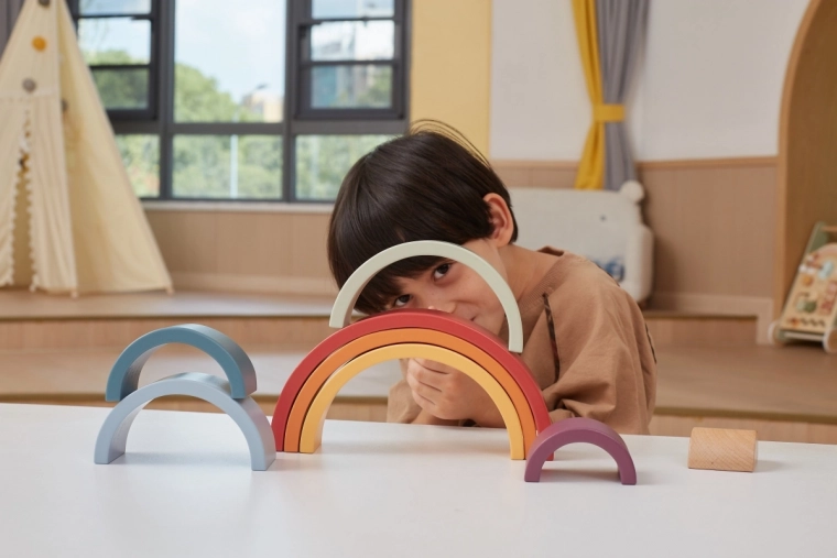 Oplev PolarB træregnbuen, et tidløst legetøj til små opdagere. De farverige buer styrker finmotorik, kreativitet og øje–hånd-koordination. Børn kan bygge en regnbue, tunneller og balancekonstruktioner og udforske uendelige muligheder for stabling. Fremstillet af kvalitets træ, uden skarpe kanter og malet med ikke-giftige farver.