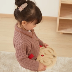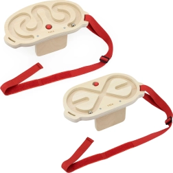 - 2 trælabyrinter, 2 kugler (træ og metal), justerbare stropper