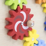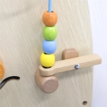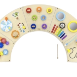 Denne kvalitetsforarbejdede vægplade i halvcirkel form giver børn en mangfoldig verden af opdagelse: tandhjul, labyrint, perlebane, formmatchning, musikelementer (cymbaler, gong), spejle, “vejr” og “årstider”, drejeskive samt termometer. Takket være den robuste vægmontering sparer den plads og fremmer øje–hånd-koordination, farve- og formgenkendelse samt logisk tænkning.