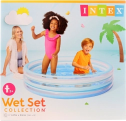 Giv børnene glæde med sommersjov i vandet! Denne oppustelige pool med en diameter på 147 cm og en højde på 33 cm tilbyder et sikkert soppebassin til små vandhunde fra 2 år. Takket være tre luftkamre, en blød skridsikker bund og nem installation er den ideel til både have og gård.