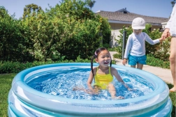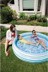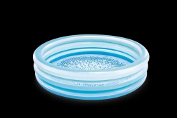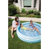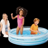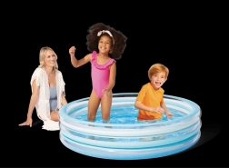 Den blå oppustelige børnepool giver børnene en behagelig afkøling på varme dage. Den stabile konstruktion af tre oppustelige ringe sikrer styrke og bløde kanter, mens bunden af blødgjort PVC er behagelig at røre ved og mindsker risikoen for at glide.
