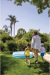 Du puster den blot op, fylder vand i, og så kan legen begynde. Takket være de kompakte mål er poolen velegnet til mindre haver og er nem at opbevare og transportere.