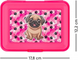 Rosa madkasse med moderne design og en hund på låget er det ideelle valg for enhver, der vil opbevare sin mad sikkert og overskueligt. Takket være den centrale skillevæg kan du opbevare de enkelte madvarer separat, hvilket forhindrer, at de blandes under transport. Boksen er let og nem at have med, hvilket gør den til en perfekt ledsager på farten, i skole eller til picnic.