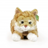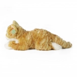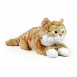 Den plysset kat har detaljer, der trofast efterligner en ægte kat, inklusive blå øjne og en klart orange farvetegning.