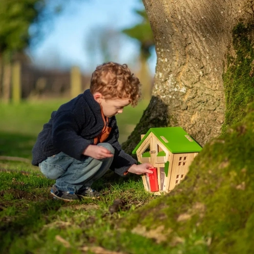 Huset er fremstillet af FSC®-certificeret træ og malet med giftfri farver.