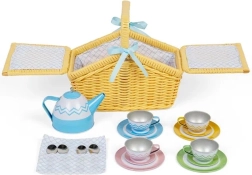 Picnicsæt i kurv til børn giver børn mulighed for at skabe deres egne scenarier og historier. Sættet indeholder en fletkurv med 18 dele, såsom blik-kopper, tallerkener og en tekande, som giver børn timevis af sjov og styrker deres sociale færdigheder.