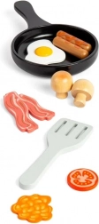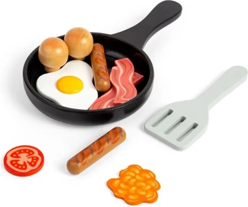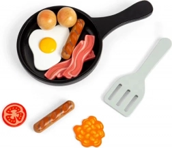 En række realistisk udseende madvarer, såsom æg og bacon, engagerer børn i rolleleg, hvilket understøtter deres sociale og sproglige færdigheder. Ud over at være sjovt er sættet også et fremragende redskab til læring.