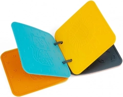 Denne silikonebog er det perfekte redskab til læring gennem leg både i vand og på land. Den understøtter fint kognitiv udvikling hos børn og hjælper dem med at lære at genkende forskellige former og farver. Takket være de teksturerede sider tilbyder den sansestimulering, som bidrager til udviklingen af finmotorik. Bogen er fremstillet af et holdbart og bæredygtigt materiale, er let at vedligeholde og opfylder alle europæiske sikkerhedsstandarder.