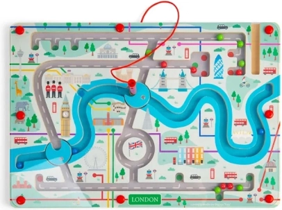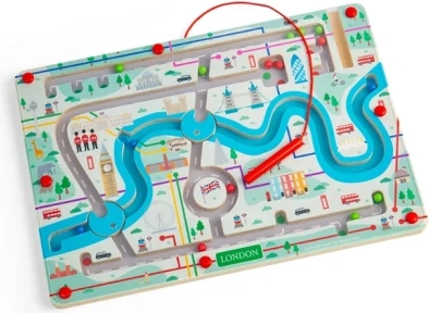 Tag på et eventyr gennem Londons travle gader med denne stilfulde magnetiske labyrint. Med den røde magnetpen kan børn føre 15 magnetiske kugler gennem labyrinten, mens de lærer ikoniske seværdigheder som Buckingham Palace, London Eye og Tower Bridge at kende. Den magnetiske labyrint underholder ikke kun, men hjælper også med at udvikle deres evner til problemløsning.