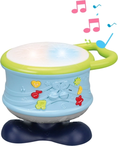 Takket være det praktiske håndtag er trommen let at bære – ideel både hjemme og på farten. Knapper, der aktiverer forskellige melodier, styrker den auditive perception og udviklingen af rytmesans, mens håndteringen af legetøjet forbedrer finmotorikken og koordinationen.