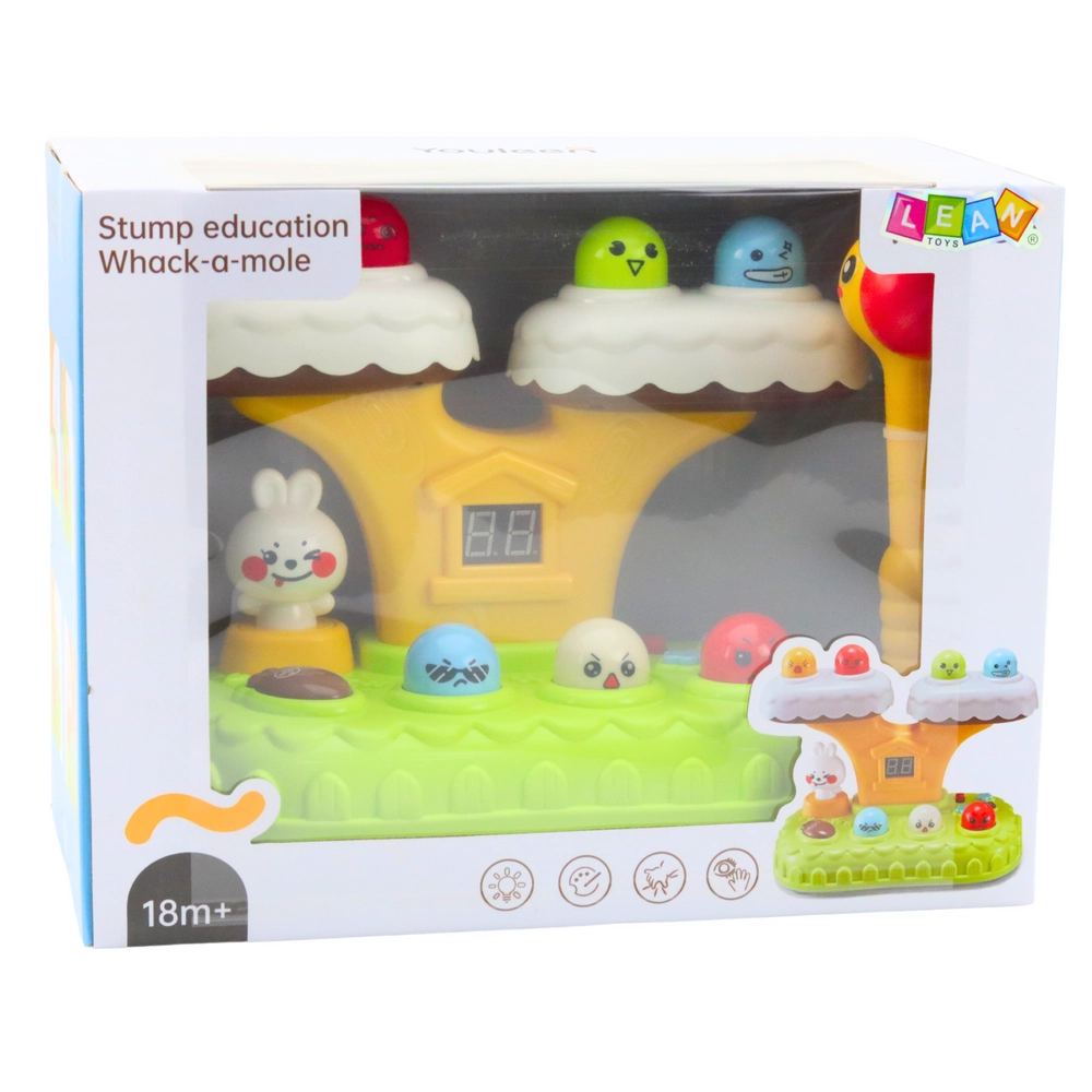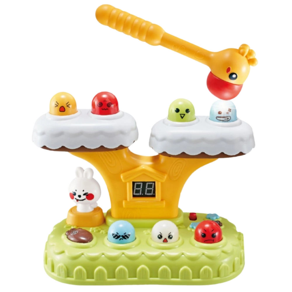 Whack‑a‑Mole bringer klassisk “banke‑spil” underholdning i en moderne udgave. Farverige figurer springer op af en træstamme, barnet rammer dem med en blød hammer og følger sin fremgang på et digitalt pointtæller‑display. 20 indbyggede melodier og lyseffekter skaber en glad stemning, mens den roterende kaninfigur øger interaktiviteten.
