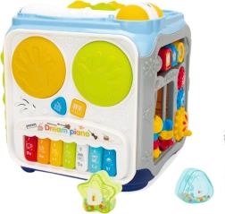 Denne interaktive aktivitetskube er designet til at udvikle børns sansemæssige perception, fin- og grovmotorik samt logisk tænkning. Takket være det brede udvalg af funktioner indbyder den til udforskning, understøtter koncentration og hånd–øje-koordination og motiverer til både selvstændig og fælles leg.
