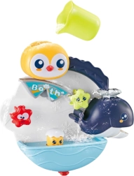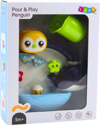 Det interaktive badelegetøj med motiv af en pingvin og andre havdyr giver børn masser af grin og læring. Når der hældes vand på, sætter dyrene i gang og begynder at snurre, hvilket vækker nysgerrighed og forlænger tiden i badet. Der medfølger en kop med huller til at hælde vand igennem, så børn på legende vis lærer om årsag og virkning.