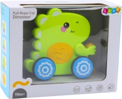 Sættet indeholder en interaktiv træksaurus på snor, tre LR44-batterier og gaveæske.