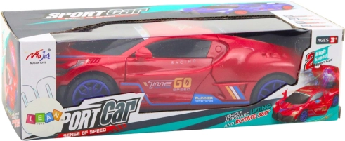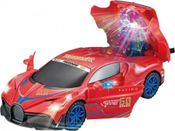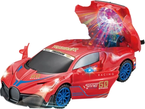 Sportsvogn med LED-kugle, 360° rotation og lyde – rød