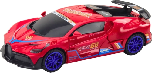 Den aerodynamiske røde karrosseri, blå hjul og bagspoiler giver bilen et ægte sporty udtryk. Dekorationer som “RACING” og “GO SPEED” understreger racerstilen og inspirerer til kreativ leg.