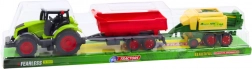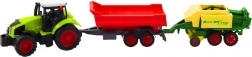 Opdag et sjovt farmsæt til små landelskere: traktor med trailer og høpresser. Det byder på realistiske detaljer, holdbar konstruktion, bevægelige dele og nem styring takket være de store hjul. Perfekt til kreativ leg og udvikling af finmotorik.