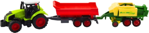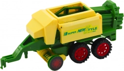 Traktor, trailer og presser udgør et komplet sæt, som gør det let for børn at efterligne arbejdet på marken – fra indsamling til transport af høballer.