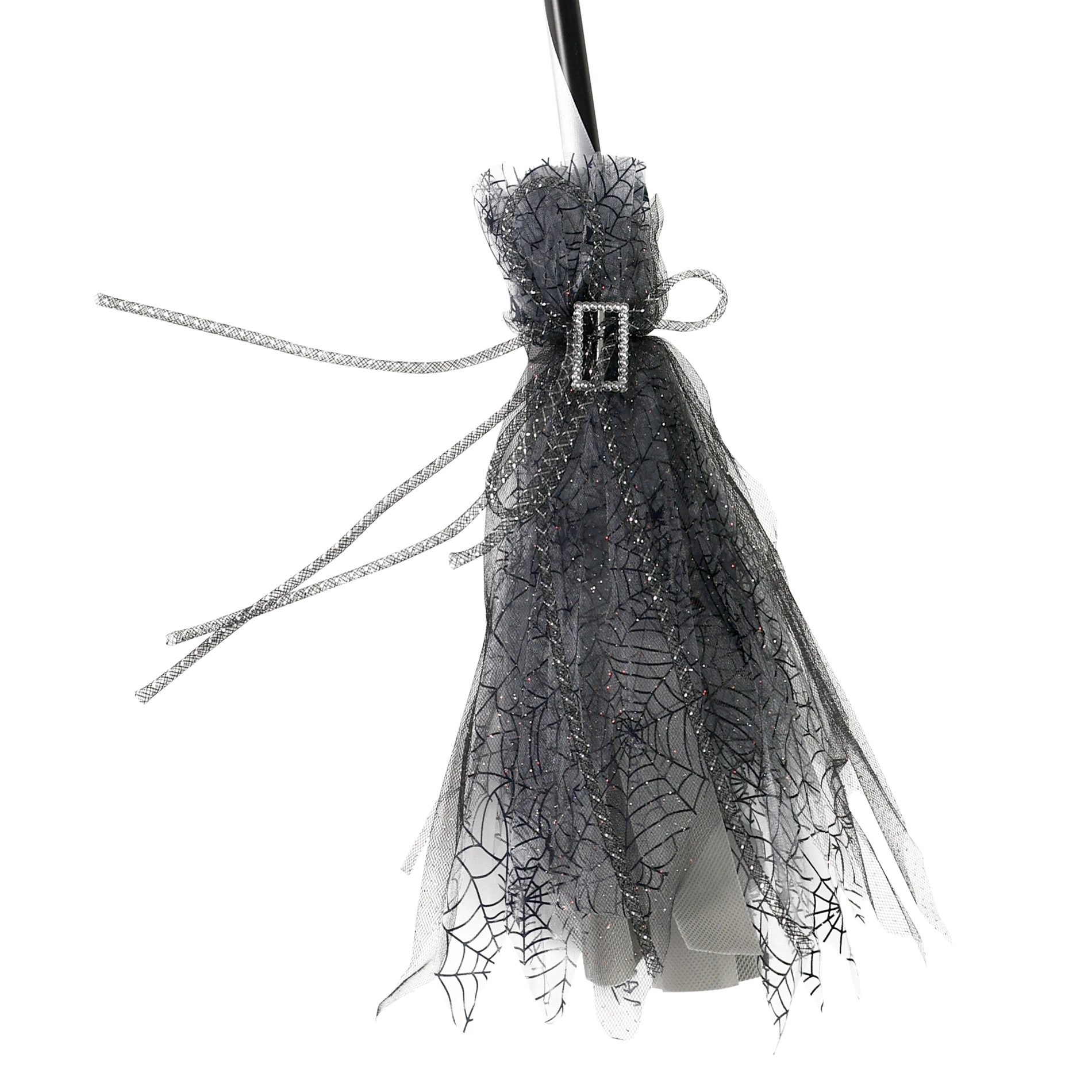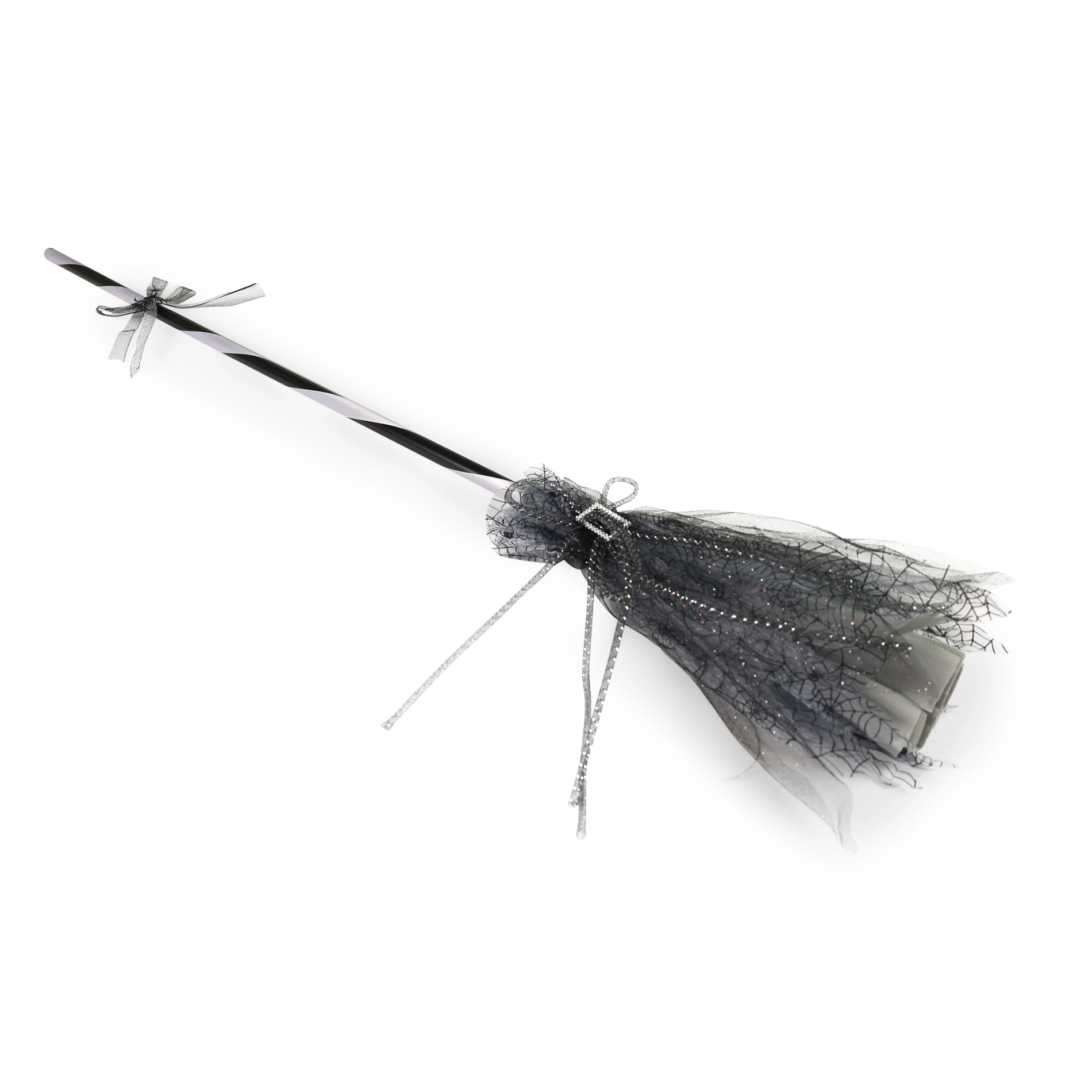 Giv dit heksekostume den perfekte prik over i’et. Denne heksekost i elegant sort–grå med sølvfarvet spænde og en fin tyl “skørt”-effekt ser flot ud ved hvert skridt. Den er let at holde, så den er god til både posering og dans.