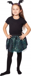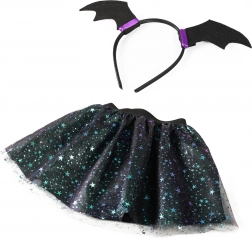 Giv børnene en magisk forvandling med en let og glitrende tutu-nederdel og en stilfuld hårbøjle med flagermusvinger. Sættet er som skabt til Halloween, fastelavn, skoleoptrædener og temafester.