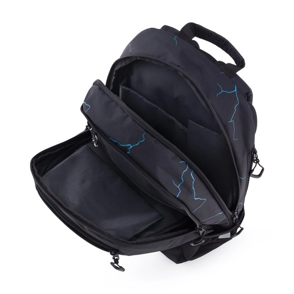 - To hovedrum og en mindre frontlomme med solide lynlåse og praktiske trækstropper.