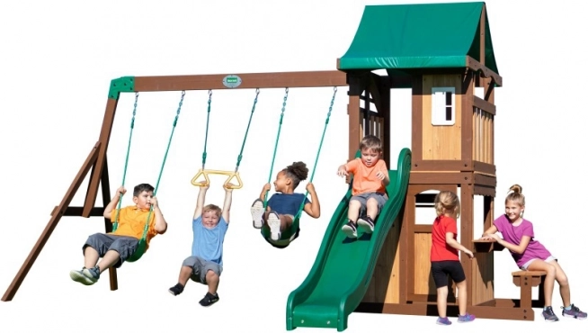 trælegeplads BACKYARD DISCOVERY Lakewood med rutsjebane, gynger og legehus