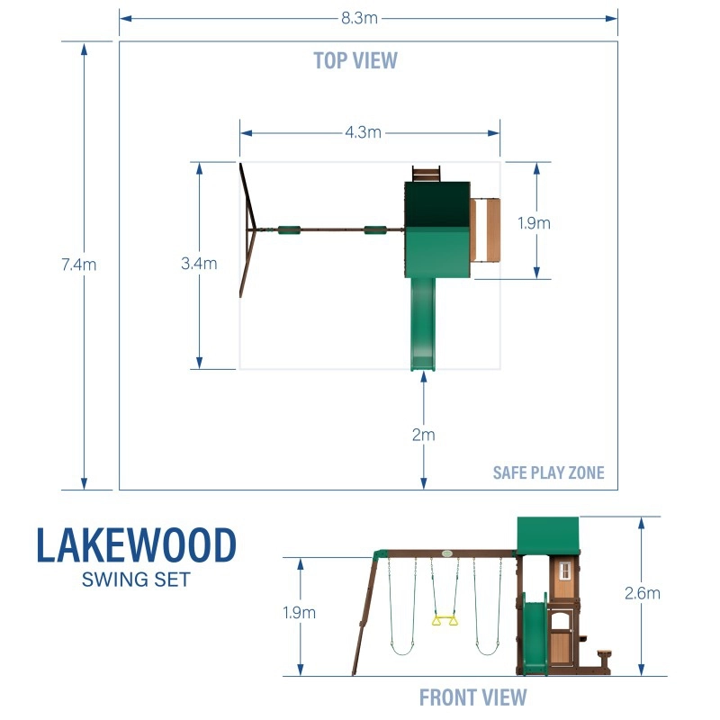 Lakewood kombinerer smart et hævet tårn med tag, rutsjebane og siddeplads ved siden, så der er masser af aktiviteter på selv et lille areal.