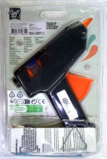 Limpistolen med smeltelim CRAFT ID er en pålidelig hjælper til kreative projekter og almindelige huslige reparationer. Når den tilsluttes stikkontakten, varmer den hurtigt op, og den smeltede lim påføres ved at trykke på aftrækkeren, hvilket giver en præcis og ren påføring.