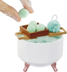 Perfekt som gave til samlere af miniaturer og kreative børn. Kapslen i form af en mystery ball garanterer spænding ved udpakning, mens de funktionelle tilbehør – fra mini “bade” over sæber til salte – giver en realistisk oplevelse i miniatureformat.