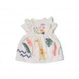 - Hvid sommerkjole med safari-motiv og giraf, flæseærmer
