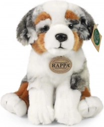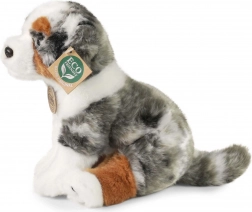 Kombinationen af hvid, grå og brun pels, udtryksfulde øjne og siddende positur gør denne hund til en tro følgesvend til leg og som dekoration.