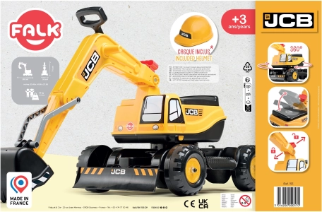 Realistisk JCB børnegravemaskine fra FALK glæder små byggere fra 3 år. Den har en 360° drejelig bom, en fuldt funktionsdygtig skovl, opbevaringsrum under sædet og en gul hjelm med i pakken. Det robuste, let afvaskelige plastdesign er ideelt til både have og sandkasse.