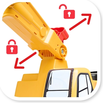 Gravarmens øverste del roterer omkring en lodret akse, så barnet nemt kan samle op og tømme uden unødvendig manøvrering. Mere sjov, mindre besvær.