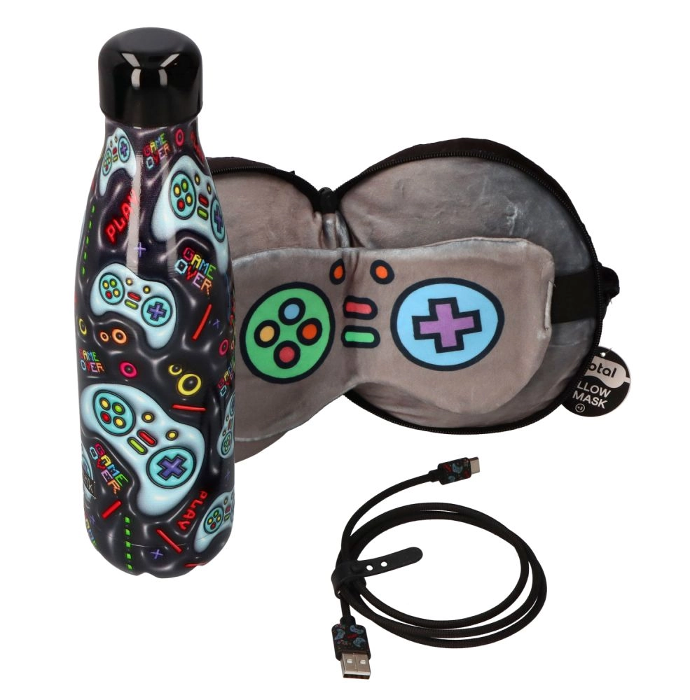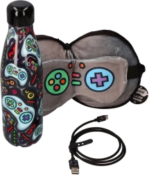 Stilfuld termoflaske med gamingmotiv og tekster som Game Over, der vil glæde enhver gamer. Takket være en kapacitet på 500 ml, en højde på 26 cm og en kompakt diameter på 7 cm er den ideel til rejser, skole og kontor.