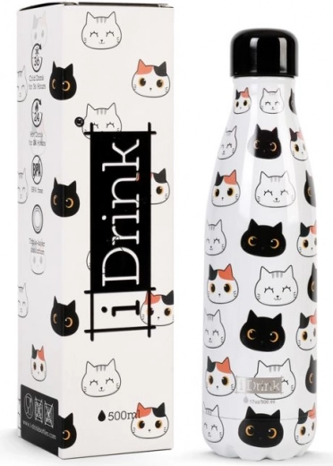 Termoflaske til katteelskere udmærker sig ved et charmerende katte-design og praktisk anvendelighed i dagligdagen. Volumen på 500 ml er ideel til kaffe, te eller vand, mens skruelåget sikrer tæt lukning, når den bæres i tasken.