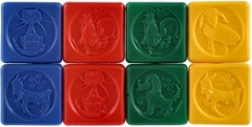 Præsenterer et sæt med otte farvede plastklodser, der er ideelle til udvikling af motoriske færdigheder og kreativitet hos dine børn. Klodserne kommer i fire forskellige farver og med forskellige dyremotiver, som understøtter visuel læring og farvegenkendelse.