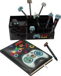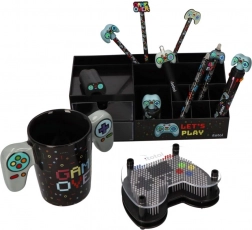 Stilfuld grafik med en gamepad og teksten LET’S PLAY fuldender dit gaming-setup eller studiebord og giver det et personligt præg.