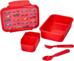 Praktisk madkasse med bilmotiv, ideel til madpakke i skole, på arbejde og på farten. Indeholder gaffel og ske, er egnet til fryser og kan opvarmes i mikrobølgeovn uden låg (maks. 100 °C). De kompakte mål gør den nem at bære og opbevare.