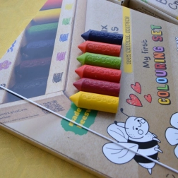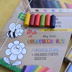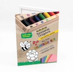 Dette kreative sæt giver børn en sikker og sjov måde at udvikle deres kunstneriske færdigheder på. Farverne lavet af bivoks er uskadelige og passende selv for de mindste kunstnere. Sættet kommer med garanti for økologisk produktion fra værksteder i Slovenien.